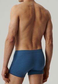 Niebieskie slipki wykonane z miękkiego materiału, z delikatnym geometrycznym wzorem, elastycznym pasem z logo "ATLANTIC" oraz dopasowanym krojem.