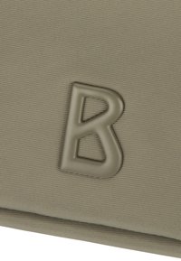 Prostokątna torebka na ramię w kolorze oliwkowej zieleni, z przednim zamkiem błyskawicznym, regulowanym paskiem oraz wytłoczonym logo "B" na przednim środku.