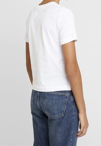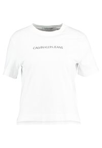Biała bawełniana krótka koszulka z czarnym logo "CALVIN KLEIN JEANS" na klatce piersiowej. Krótkie rękawy i luźny krój.