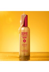 - Ethylhexyl Palmitate, Diethylhexyl 2,6-Naphthalate, Octocrylene, Isododecane, Butyl Methoxydibenzoylmethane, Butyloctyl Salicylate, Ethylhexyl Salicylate, Polyester-8, Dextrin Palmitate, Ethylhexyl Triazone, Citrullus Lanatus (Watermelon) Seed Oil, Prunus Armeniaca (Apricot) Kernel Oil, Caprylic/Capric Triglyceride, Cocos Nucifera (Coconut) Oil, Ananas Sativus (Pineapple) Fruit Extract, Psidium Guajava (Guava) Fruit Extract, Theobroma Cacao (Cocoa) Seed Extract, Helianthus Annuus (Sunflower) Seed Oil, Silica, Diethylhexyl Syringylidenemalonate, Synthetic Fluorphlogopite, Tocopherol, Parfum (Fragrance), Tin Oxide, Vanillin, Tetramethyl Acetyloctahydronaphthalenes, Rose Ketones, Benzaldehyde, CI 77891 (Titanium Dioxide), CI 77491 (Iron Oxides).
