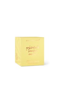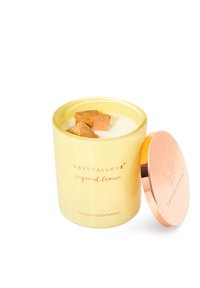 Rozświetl swoją przestrzeń świecą CRYSTALLOVE z żółtym awenturynem – kamieniem optymizmu, radości i wewnętrznej siły. Zmysłowy, cytrusowy zapach SUGARED LEMON otula przestrzeń słodyczą świeżo wyciśniętej cytryny z nutą werbeny i bergamotki. Świeca wykonana w całości z naturalnego i biodegradowalnego wosku sojowego, przyjaznego dla środowiska. Świeca posiada drewniany knot, który pali się wyjątkowym i pełnym uroku płomieniem. Luksusowa pokrywka w kolorze różowego złota uchroni wosk przed zanieczyszczeniami z zewnątrz.