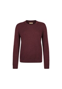 Granatowy sweter dziany, okrągły dekolt, długie rękawy, dopasowane mankiety i dół, miękka tekstura, minimalistyczny design, bez wzorów i akcentów.