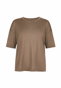 Kobieta z długimi ciemnymi włosami, ubrana w jasnofioletowy krótki top związywany w talii, stojąca na tle białej ściany.