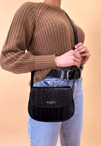 Nieważne, czy przyciąga wzrok na dzień, czy jako stylowy dodatek na wieczór — „Kayla” jest dla Ciebie! Jako stylowy towarzysz, błyszczy głęboką czernią i modną strukturą krokodyla, przyciągając uwagę wszystkich. Będziesz chciał rzucić okiem dwa razy! Kompaktowa torba imprezowa, która ma miejsce na wszystkie niezbędne rzeczy, a mimo to zawsze błyszczy stylem!