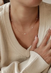 Oba naszyjniki mają 41 cm długości z przedłużką o 5 cm i są bezpiecznie zapinane na zamek homara. Te idealnie dopasowane elementy umożliwiają bezproblemowe nakładanie warstw i tworzą ponadczasowy, minimalistyczny wygląd, który pięknie komponuje się z casualowymi stylizacjami, ubraniami biurowymi lub formalnymi okazjami, takimi jak śluby.
