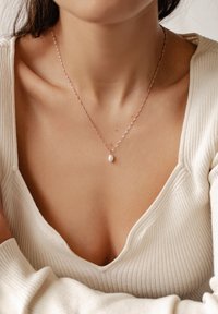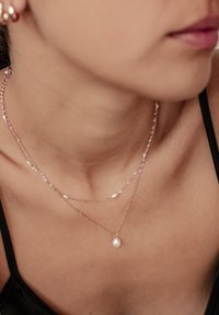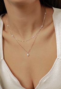 Wskazówka stylizacyjna: Noś oba naszyjniki w pełnej długości, aby uzyskać elegancki ślubny wygląd, lub skróć jeden nieznacznie, aby stworzyć szykowną, wielowymiarową codzienną warstwę, która bez wysiłku pasuje do T-shirtów, bluzek czy dzianin.