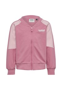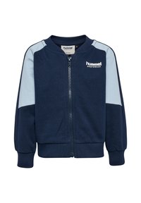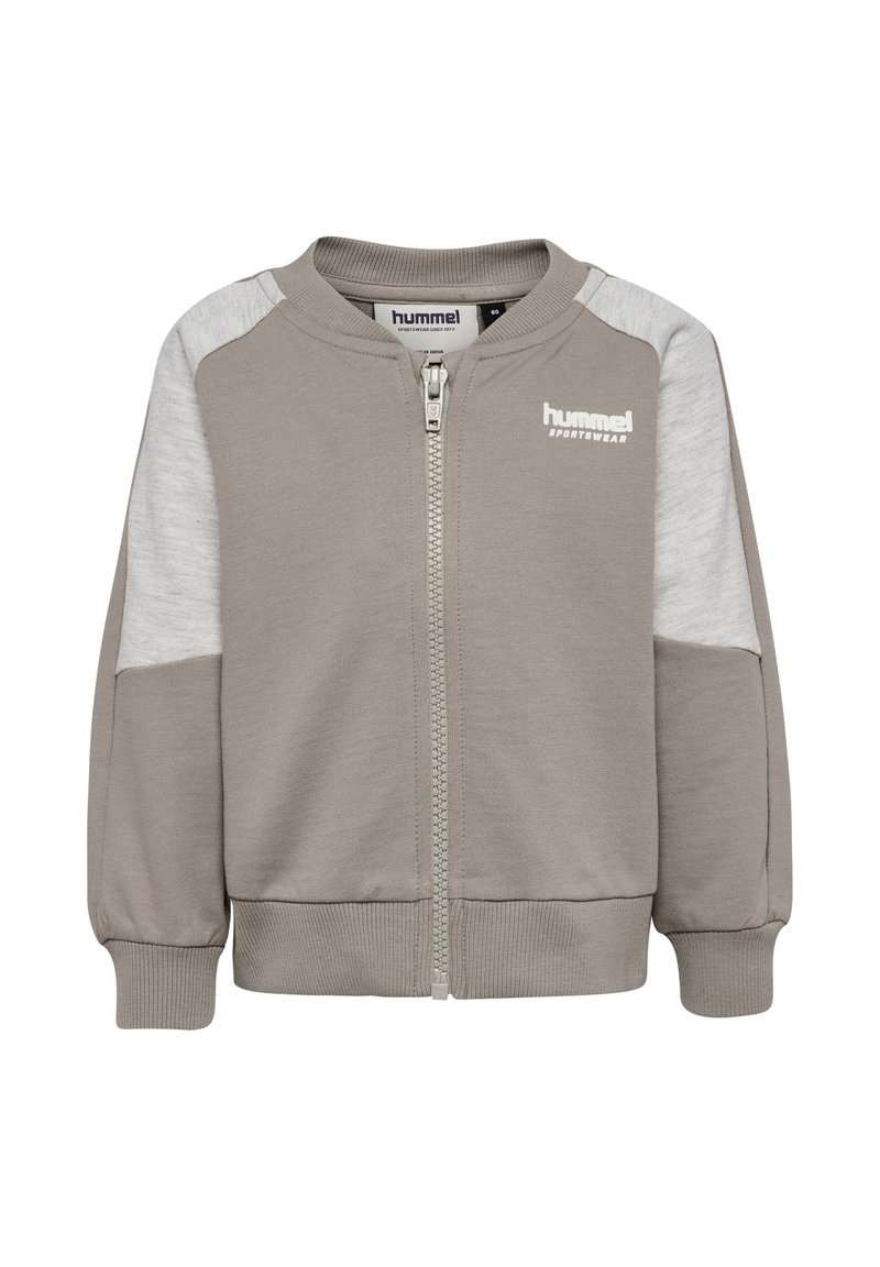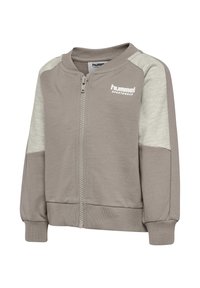 Jasnoszara bluza na zamek z kontrastującymi jasnoszarymi rękawami, prążkowanymi mankietami i dołem. Na piersi znajduje się logo „hummel”.