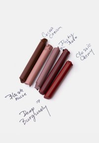 - BIS-DIGLYCERYL POLYACYLADIPATE-2, CAPRYLIC/CAPRIC TRIGLYCERIDE, C12-15 ALKYL BENZOATE, C18-36 ACID TRIGLYCERIDE, RICINUS COMMUNIS (CASTOR) SEED OIL, MICROCRYSTALLINE WAX/CERA MICROCRISTALLINA, MICA, HYDROGENATED VEGETABLE OIL, OZOKERITE, AROMA/FLAVOR, CAPRYLYL GLYCOL, PHENOXYETHANOL, LAUROYL LYSINE, HEXYLENE GLYCOL, TOCOPHEROL, VANILLIN, D-LIMONENE, CITRUS LIMON (LEMON) PEEL OIL, GERANIOL, BHT, [+/- (MAY CONTAIN): RED 6 (CI 15850), RED 6 LAKE (CI 15850), RED 7 LAKE (CI 15850), YELLOW 5 LAKE (CI 19140), BLUE 1 LAKE (CI 42090), IRON OXIDES (CI 77491, CI 77492, CI 77499), TITANIUM DIOXIDE (CI 77891)]
