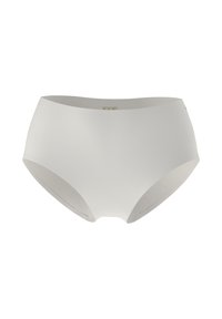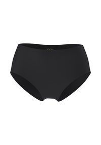 Czarne, wysokie figi bikini wykonane z gładkiej tkaniny, z subtelnym haftem logo z boku, o dopasowanym kroju i minimalnej ilości elastycznej gumki.