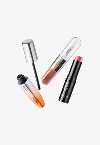 - MAXI MOD MASCARA INGREDIENTS: AQUA (WATER/EAU), GLYCERYL STEARATE, COPERNICIA CERIFERA CERA (COPERNICIA CERIFERA (CARNAUBA) WAX/CIRE DE CARNAUBA), RICINUS COMMUNIS SEED OIL (RICINUS COMMUNIS (CASTOR) SEED OIL), ACRYLATES COPOLYMER, VP/HEXADECENE COPOLYMER, CETEARY L ALCOHOL, POLYVINYL ALCOHOL, GLYCERIN, CERA MICROCRISTALLINA (MICROCRYSTALLINE WAX/CIRE MICROCRISTALLINE), C12-16 ALCOHOLS, PHENOXY ETHANOL, BENZYL ALCOHOL, CETETH-10 PHOSPHATE, DICETYL PHOSPHATE, PALMITIC ACID, ETHYLHEXYLGLYCERIN, LECITHIN, SODIUM DEHYDROACETATE, POTASSIUM SORBATE, SODIUM HYDROXIDE, SODIUM CITRATE, DEHYDROACETIC ACID, ARGANIA SPINOSA KERNEL OIL, TOCOPHEROL, ASCORBYL PALMITATE , BHT, CITRIC ACID, CI 77499 (IRON OXIDES). VELVET TOUCH CREAMY STICK BLUSH 06 INGREDIENTS: ISONONYL ISONONANOATE, MICA, POLYETHYLENE , SYNTHETIC WAX, NEOPENTYL GLYCOL DICAPRYLATE/DICAPRATE, POLYMETHYLSILSESQUIOXANE, TALC, ZINC STEARATE, SILICA, DIMETHICONE, ETHYLEN E BRASSYLATE, PENTAERYTHRITYL TETRA-DI-T-BUTYL HYDROXYHYDROCINNAMATE, PLUKENETIA VOLUBILIS SEED OIL, PISTACIA VERA SEED OIL, HYDROGE NATED VEGETABLE OIL, TIN OXIDE, TOCOPHEROL, DICALCIUM PHOSPHATE. +/- (MAY CONTAIN): CI 19140 (YELLOW 5 LAKE), CI 77891(TITANIUM DIOX IDE), CI 77491 - CI 77492 - CI 77499 (IRON OXIDES), (RED 30 LAKE), CI 42090 (BLUE 1 LAKE), CI 75470 (CARMINE), CI 15850 (RE D 6/RED 7). CONTAINS CARMINE AS COLOUR ADDITIVE. UNLIMITED DOUBLE TOUCH 103 - BASE COLOUR INGREDIENTS: ISODODECANE, BIS-HYDROXYETHOX YPROPYL DIMETHICONE/IPDI COPOLYMER ETHYLCARBAMATE, MICA, DISTEARDIMONIUM HECTORITE, DIMETHICONE/VINYL DIMETHICONE CROSSPOLYMER, DIME THICONE, ALCOHOL, AQUA (WATER/EAU), ETHYL VANILLIN, DICALCIUM PHOSPHATE, PENTAERYTHRITYL TETRA-DI-T-BUTYL HYDROXYHYDROCINNAMATE, TIN OXIDE. +/- (MAY CONTAIN): CI 77891 (TITANIUM DIOXIDE), CI 77491 - CI 77492 - CI 77499 (IRON OXIDES), CI 15850 (RED 7 LAKE), CI 4209 0 (BLUE 1 LAKE), CI 15985 (YELLOW 6 LAKE). TOP COAT INGREDIENTS: DIMETHICONE, CETYL PEG/PPG-10/1 DIMETHICONE, CERA MICROCRISTALLINA (MICROCRYSTALLINE WAX/CIRE MICROCRISTALLINE), PARAFFIN, PENTAERYTHRITYL TETRA-DI-T-BUTYL HYDROXYHYDROCINNAMATE.