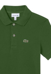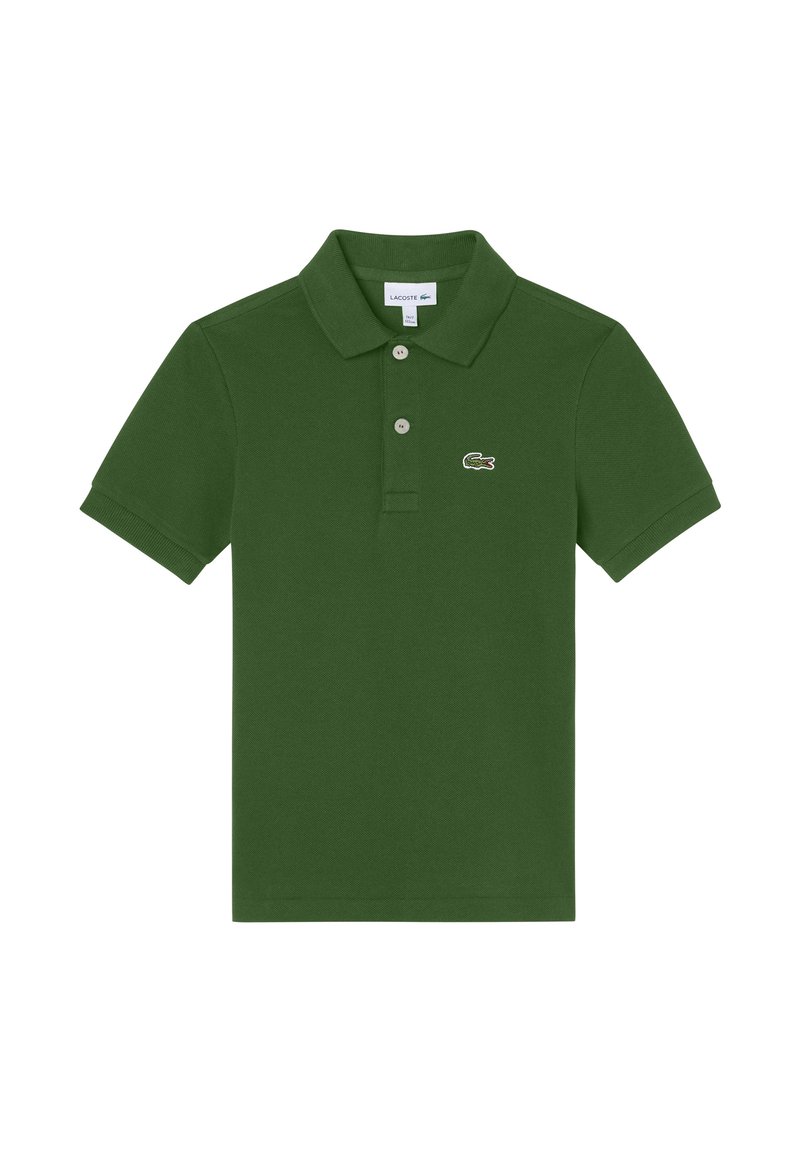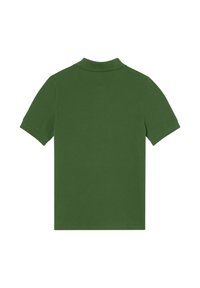 Zielona koszulka polo z bawełny, z klasycznym kołnierzykiem, trzema guzikami oraz małym haftowanym logo na lewej piersi. Krótkie rękawy.