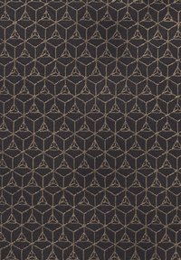 Ciemnobrązowy krawat wykonany z materiału, ozdobiony geometrycznym wzorem w jaśniejszych odcieniach, z wąskim, spiczastym końcem oraz gładką fakturą.