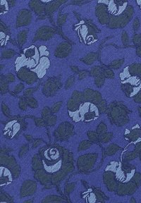 Granatowy krawat z mikro kwiatowym wzorem w kolorach czerwonym, żółtym i niebieskim. Teksturowany materiał, spiczasty koniec oraz czarne wykończenie z tyłu.