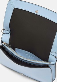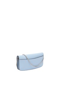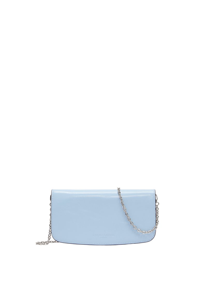 Skóra bydlęca z błyszczącym wykończeniemGłówna komora z klapą i zatrzaskiemWnętrze z pięcioma kieszeniami na karty, dwoma przegrodami na banknoty, jedną dużą kieszenią oraz kieszenią na zamekodpinany metalowy pasek na ramiężintegrowana ochrona RFIDTłoczenie logo z przodu