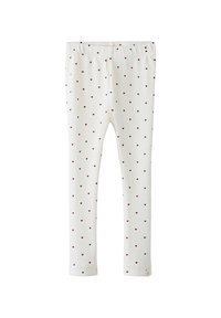 Jasnoszara, prążkowana piżama w białe serduszka, składająca się z długich rękawów i pasujących spodni, zaprezentowana na dziecku siedzącym.
