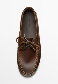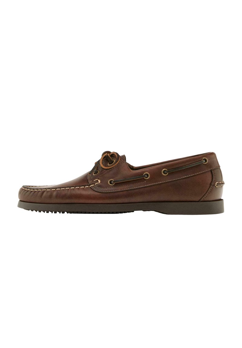 Wypukły szew na nosku. Styl żeglarski. Skórzane sznurówki. Skóra ze zmiękczanym wykończeniem. Made of cowhide leather.