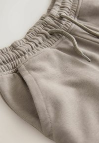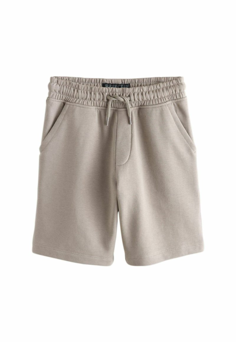 Jasnobeżowe szorty wykonane z miękkiego materiału, z elastycznym pasem ze ściągaczem, dwoma bocznymi kieszeniami i luźnym krojem.