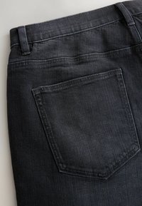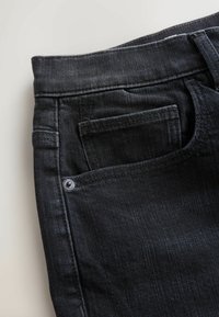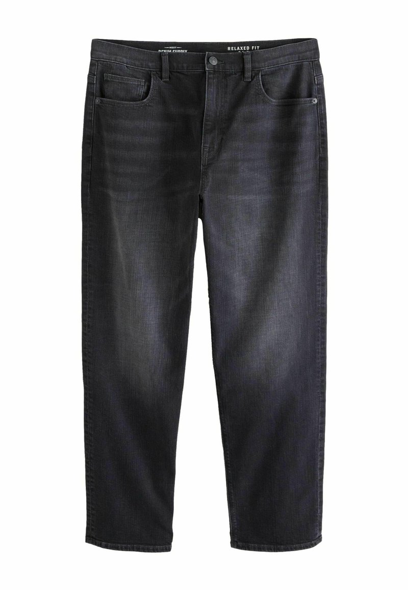Czarne, luźne dżinsy o fasonie relaxed fit, z pięcioma kieszeniami i zapięciem na guzik, z subtelnym wyblaknięciem i prostymi nogawkami.