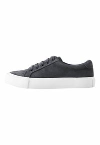 Brązowe skórzane trampki o gładkim wykończeniu, białej gumowej podeszwie, okrągłym nosku i płaskich sznurówkach. Minimalistyczny design z subtelnymi akcentami przeszyć.