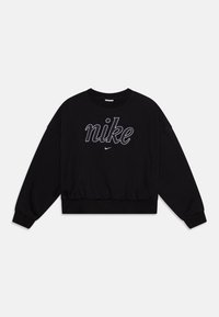 Czarny długi rękaw crewneck z białym konturowym napisem "nike" oraz małym logo Nike swoosh poniżej tekstu z przodu.
