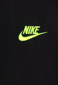 Czarna bluza z kapturem wykonana z miękkiego materiału, z kieszenią kangurką, ściągaczami na rękawach oraz neonowo zielonym logo Nike na piersi.