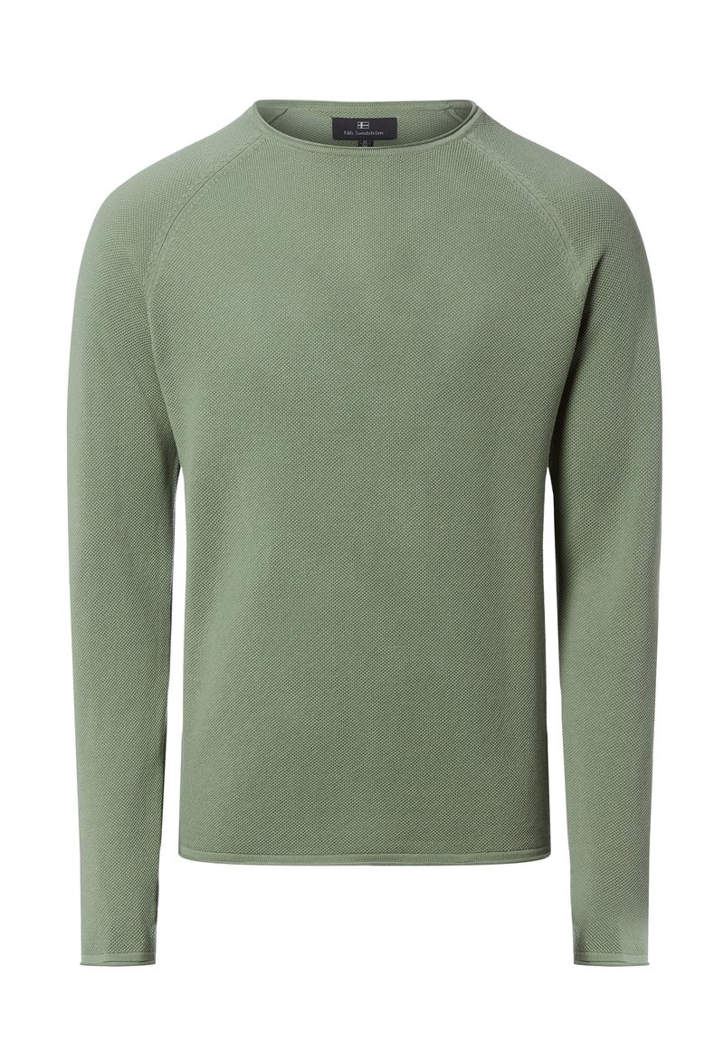 Bluza z długim rękawem w jasnozielonym kolorze, z fakturowanej tkaniny, z okrągłym dekoltem, z prążkowanymi mankietami i dołem, z rękawami raglanowymi dla luźnego kroju.
