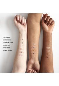- Polybutene, Mineral Oil/Paraffinum Liquidum/Huile Minérale, Hydrogenated Styrene/Isoprene Copolymer, Ethylhexyl Palmitate, Synthetic Fluorphlogopite, Argania Spinosa Kernel Oil, Amorphophallus Konjac Root Powder, Tin Oxide, Calcium Titanium Borosilicate, Trihydroxystearin, Sodium Hyaluronate, Vanillyl Butyl Ether, Barium Sulfate, Menthol, Menthyl Lactate, Ethylhexylglycerin, Tocopherol, Tocopheryl Acetate, Pentaerythrityl Tetra-di-t-butyl Hydroxyhydrocinnamate, Phenoxyethanol. MAY CONTAIN / PEUT CONTENIR (+/-): Red 7 (CI 15850), Carmine (CI 75470), Iron Oxides (CI 77491, CI 77492, CI 77499), Titanium Dioxide (CI 77891), Mica. <D145>.