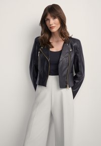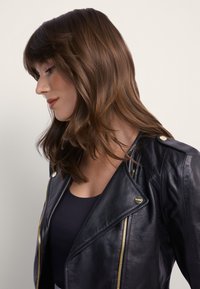 Kurtka leży idealnie, miękka skóra, ładne ramiona. Dokładne wykończenie, rękaw długi.