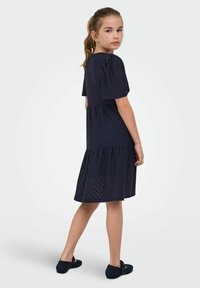 Osoba na zdjęciu ma 142 cm wzrostu i nosi rozmiar 134/140