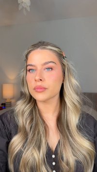• Portret osoby o długich, falujących blond włosach, ubranego w jasnobeżowy sweter z miękkiej dzianiny z golfem.