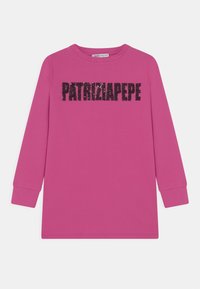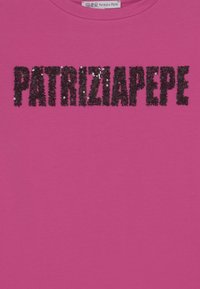 Różowa bluza z długim rękawem z czarnym cekinowym logo "PATRIZIAPEPE" na przodzie, wykonana z miękkiej bawełnianej tkaniny.