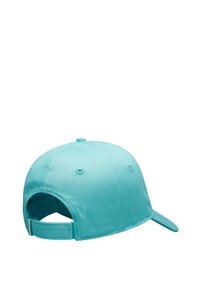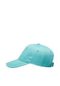 Turkusowa czapka z bawełny o strukturalnym kroju. Z przodu haftowane logo w kształcie serca oraz zakrzywiony daszek.