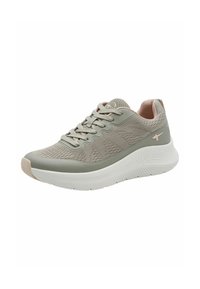 Jasnozielone sportowe sneakerzy z teksturowaną siateczką, z zapięciem na sznurówki i białą gumową podeszwą. Posiadają subtelny wzór w paski oraz logo marki.