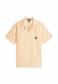 Paski na całej powierzchni tej bawełnianej koszuli z krótkim rękawem i kubańskim kołnierzem podkreślają swobodny, wakacyjny charakter.Najważniejsze cechy • Czysta bawełna o fakturze papieru • Pionowe paski na całej powierzchni • Kołnierzyk kubański • Jedna naszywana kieszeń na piersi • Charakterystyczna taśma wewnątrz dekoltu • Haftowane logo Tommy Hilfiger na kieszeni • Logo Tommy Hilfiger • Haftowana flaga Tommy Hilfiger na rękawie Krój i dopasowanie • Regularny krój • Krótkie rękawy Skład i pielęgnacja • 100% bawełna