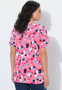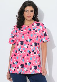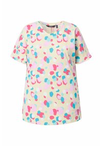 T-shirt, swobodny oversized, z miękkiego dżerseju z kolorowym wzorem w kropki. Okrągły dekolt, opuszczone ramiona, rękaw do łokcia ze stałym podwinięciem.. T-shirt, swobodny oversized, z miękkiego dżerseju z kolorowym wzorem w kropki. Okrągły dekolt, opuszczone ramiona, rękaw do łokcia ze stałym podwinięciem. Wskazówki pielęgnacyjne: Nie suszyć w suszarce bębnowej, Prać w pralce.