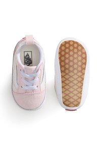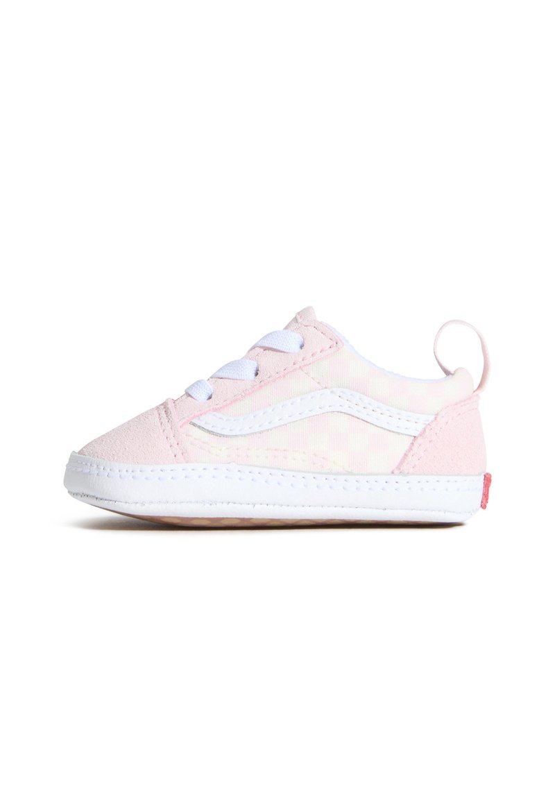 Zapewnij im dobry start dzięki tej miniaturowej wersji naszego kultowego buta Old Skool. Świeży miętowo-zielony i biały wzór w szachownicę nadaje zabawny akcent klasycznej sylwetce, podczas gdy wysokiej jakości materiały zapewniają trwałość przy pierwszych krokach. Wygodna konstrukcja i elastyczna podeszwa sprawiają, że jest to idealny wybór dla pierwszych stylowych przygód Twojego malucha.
